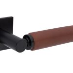 Kolekcja 5S LEATHER - eleganckie klamki ze skorzanym wykonczeniem. Mosiaz polaczony z naturalna skora.